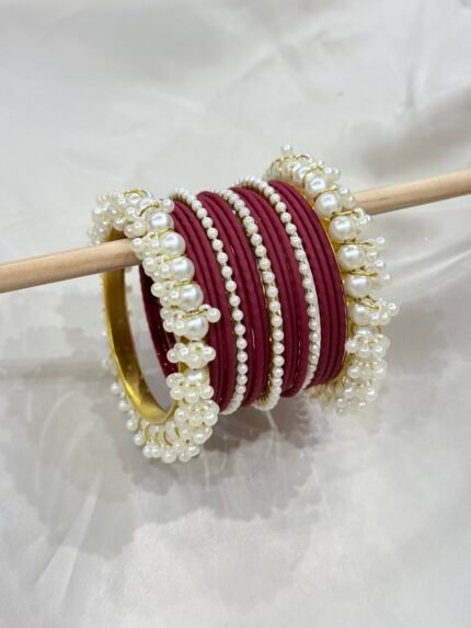 Maroon Velvet Bangle Set